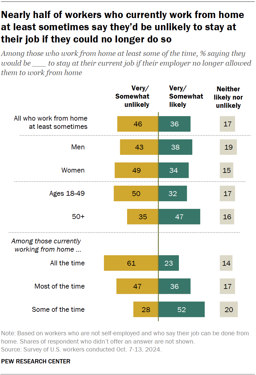 46% of remote workers would be unlikely to stay if remote work options were taken away.